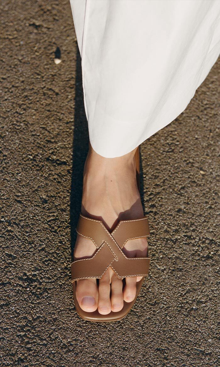 The Dylan Sandal - Sand Crinkle Gloss Nappa