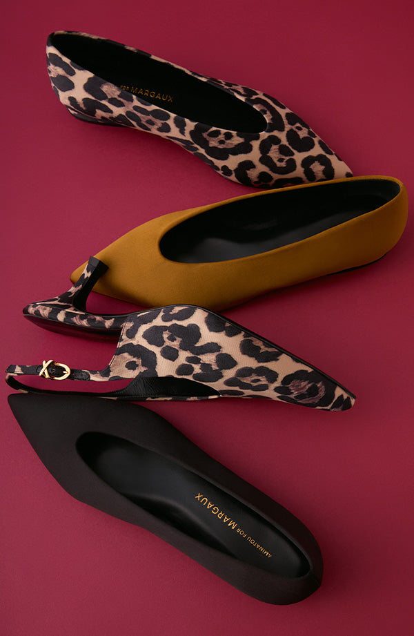 We imagined two of our newest silhouettes, The Parra and The Prado, in rich satin to bring an extra dose of holiday party energy. From classic black to a jewel-tone ochre and luxe leopard (with each pair cut from custom fabric, meaning no two styles will be identical), your new statement shoe has arrived.