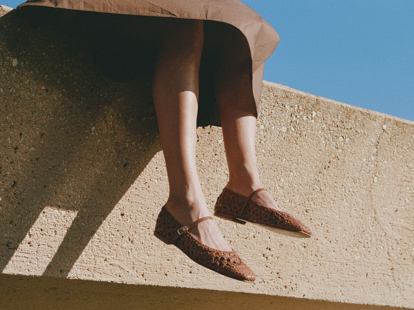 An evolution of our Fonteyn flat made from handwoven leather with an adjustable strap. The subtly squared off-toe is a chic finish to this seasonal take on the elegant—and comfortable—ballerina.