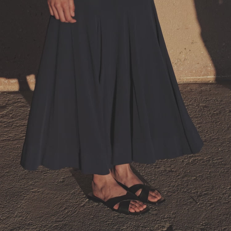 A slip-on sandal that epitomizes effortless dressing with soft leather straps, a squared-off toe, and an attitude that works dressed up or down.